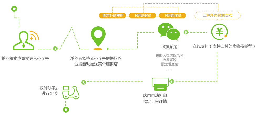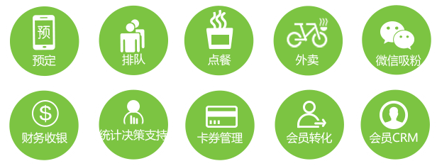完美对接所有的微信基础和高级功能接口,点餐、外卖订座、会员、营销全部和微信打通。