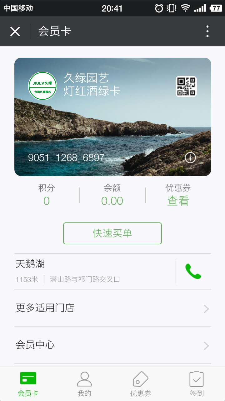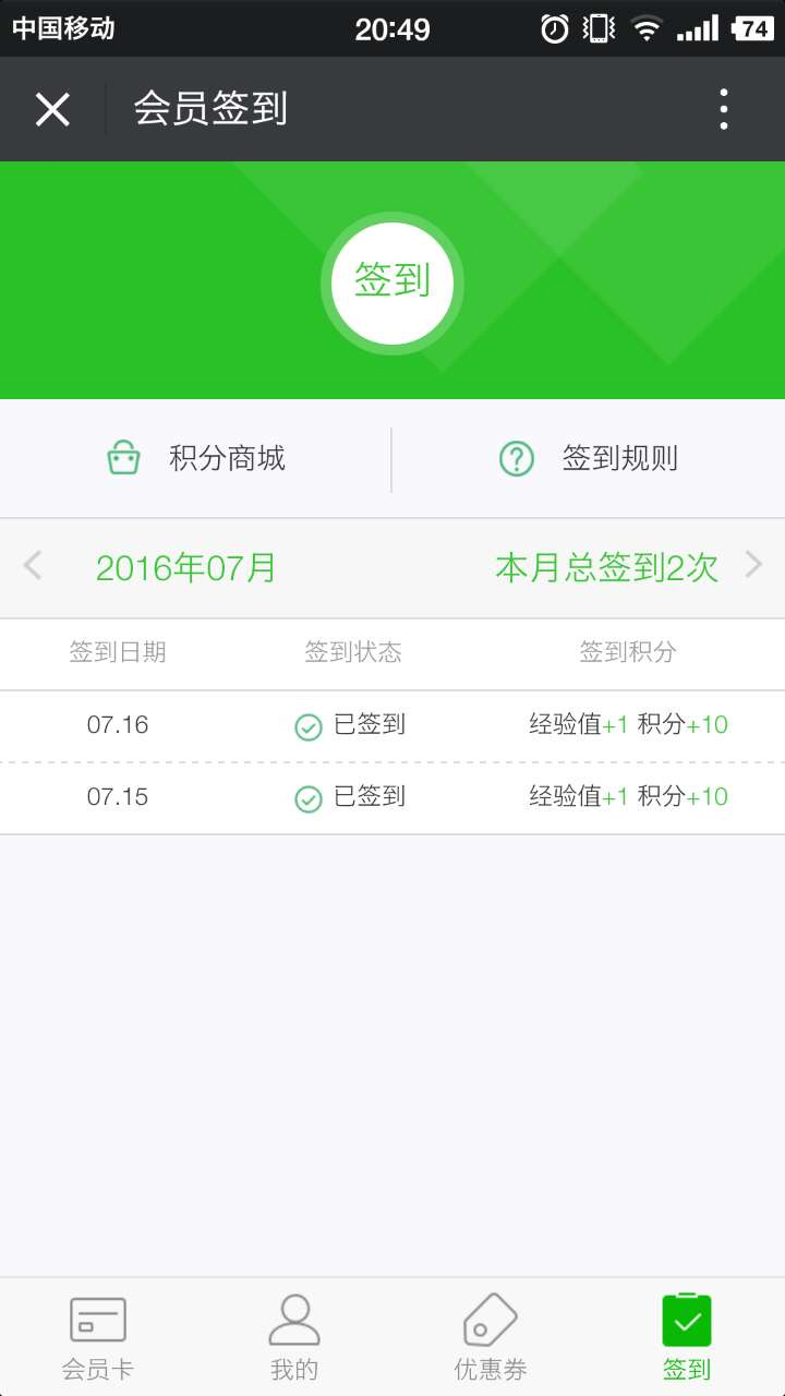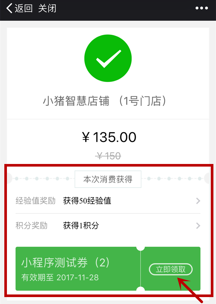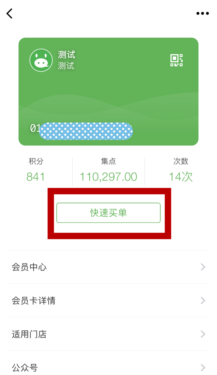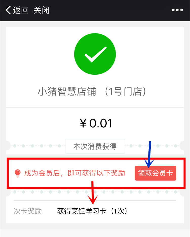 此时,小编本次支付所赠送的积分/经验值/次卡已经直接进入会员卡内啦。小编在商家赠送的“诱惑”下成为了门店会员,商家也完成了会员拉新。