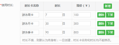 PC端后台点击【编辑】可以进入【修改时长卡】页面,对部分信息进行修改,如时长卡价格、单天使用次数等,也可以选择新增、下架或删除某张时长卡。