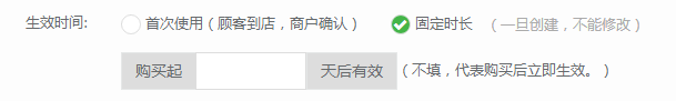 商家可以选择,用户首次核销后开始生效(比如用户买了一张周卡,第一次核销使用后的7天内为有效期);或者设置为固定时长后生效,比如购买后立即生效、购买后3天生效等等。