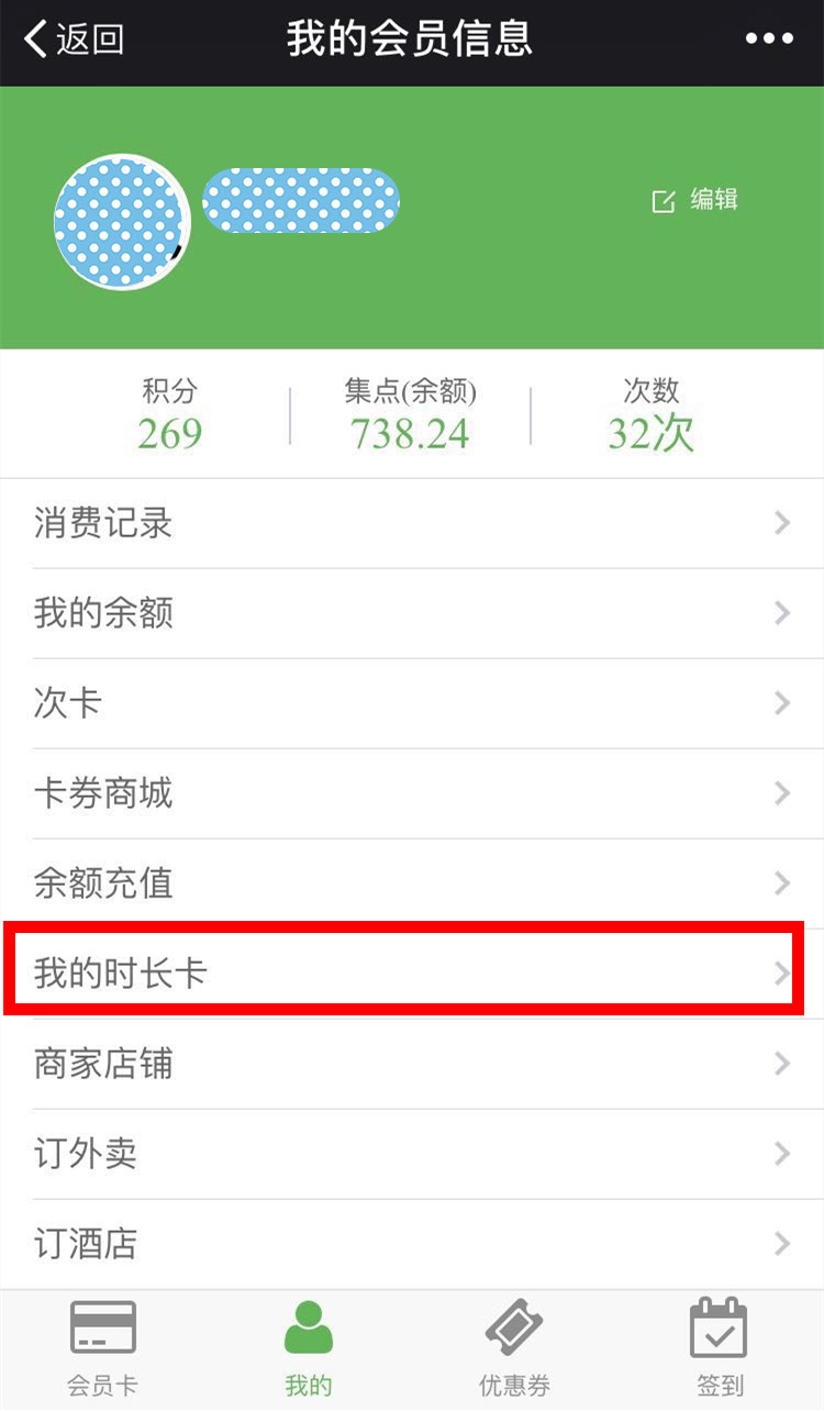 时长卡与会员卡无缝融合,用户领取商家会员卡之后,可以通过【会员卡】-【会员中心】进入【我的时长卡】页面,并在此购买所需要的时长卡。