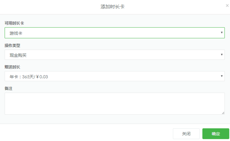 如果用户通过现金购买、商家赠送、补录等方式获得时长卡时,商家在【会员】-【添加时长卡】中为用户进行时长卡添加。