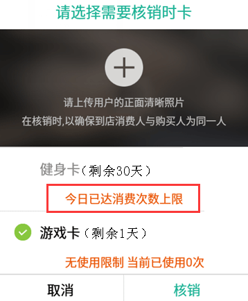 2.如果时长卡超过当日核销次数上限,将会有相应的提示。
