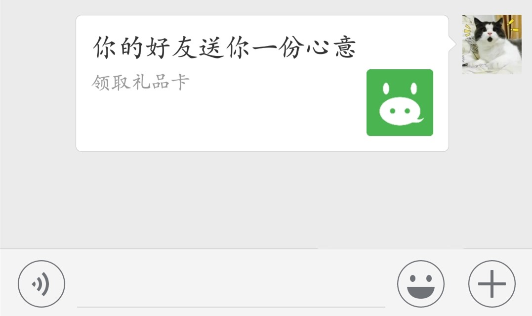 分享(转赠)给好友后,好友将收到被转赠的礼品卡: