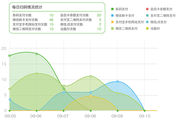 每个店铺往往有多个POS机,再加上微信支付宝收银,收银通道非常混乱。好铺管有全通道融合线上线下的收银体系,线上线下全通道财务数据统一